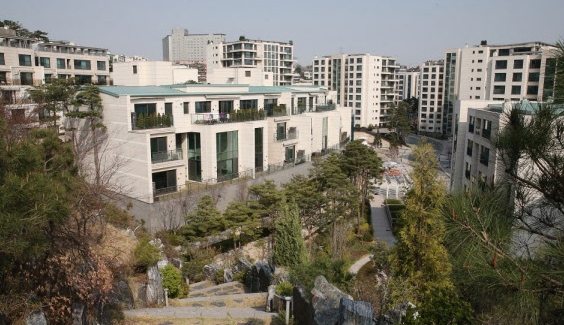 한남더힐은 한남동 매봉산 밑에 위치한 고급 아파트 단지로, 용적률이 120%에 불과해 평당 가격이 높습니다.